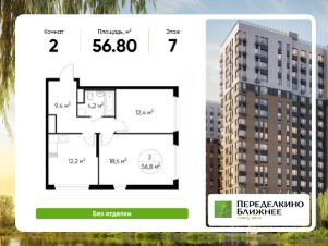 Общая площадь квартиры - 56,8 кв. м, этаж 7 из 17.