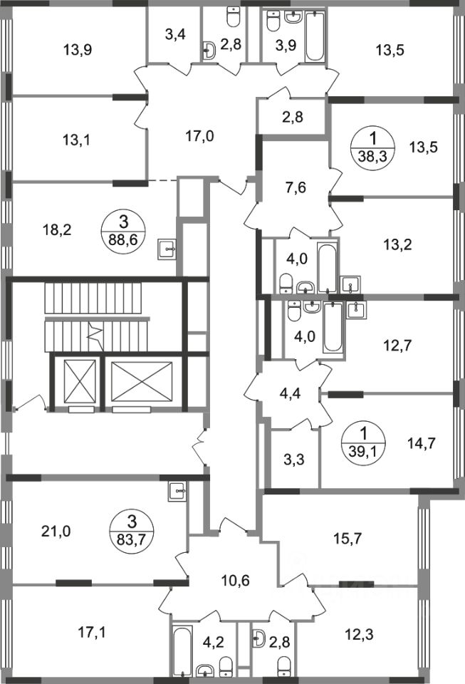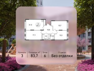 Общая площадь квартиры - 83,7 кв. м, этаж 6 из 17.