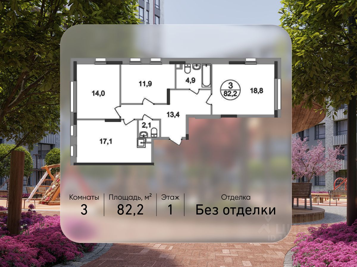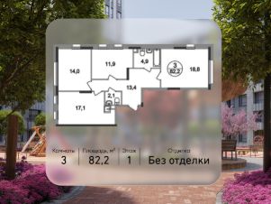 Общая площадь квартиры - 82,2 кв. м, этаж 1 из 17.