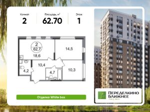Общая площадь квартиры - 62,7 кв. м, этаж 1 из 17.