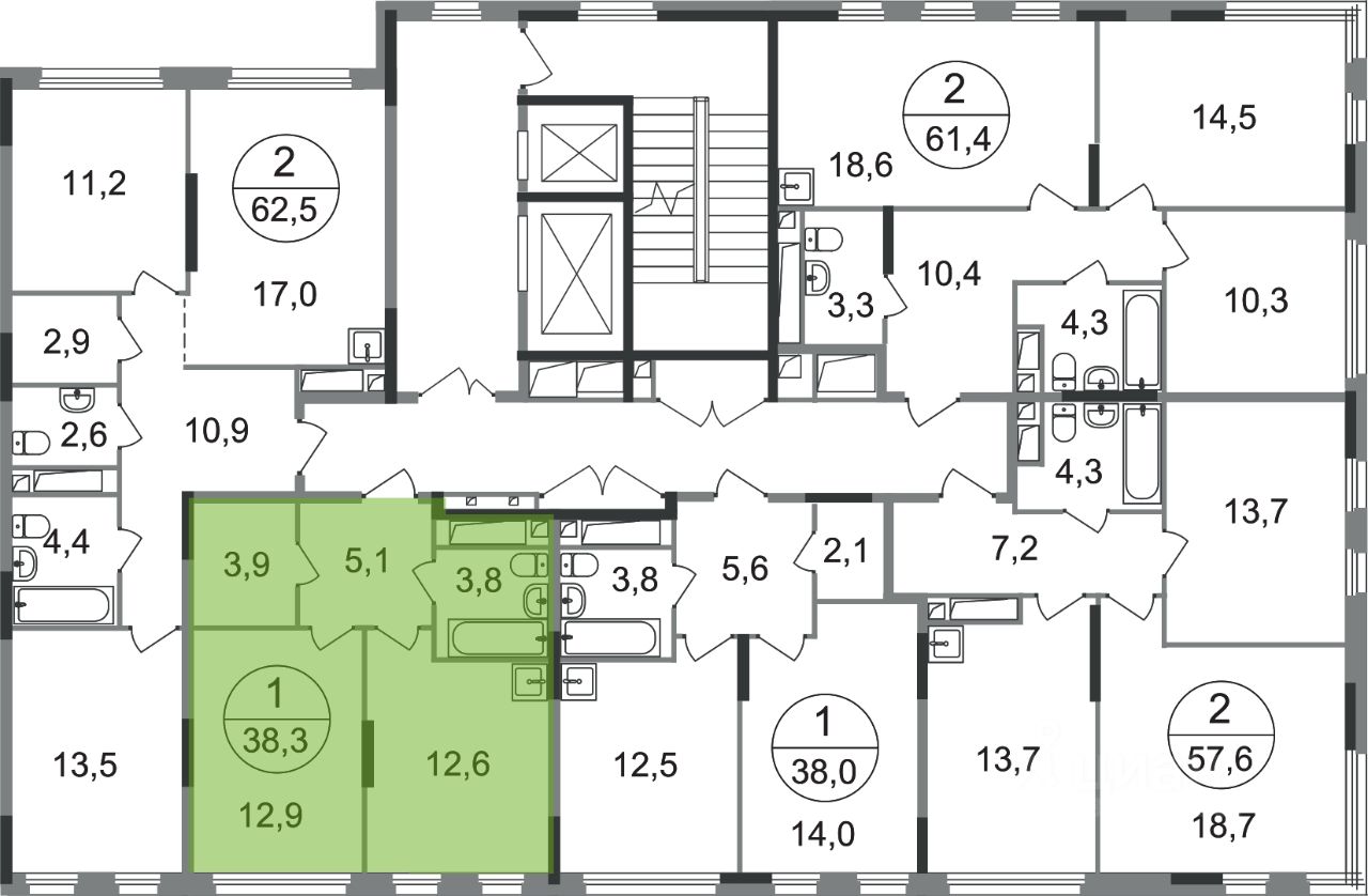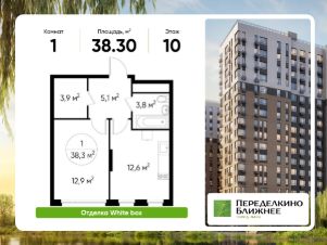 Общая площадь квартиры - 38,3 кв. м, этаж 10 из 17.