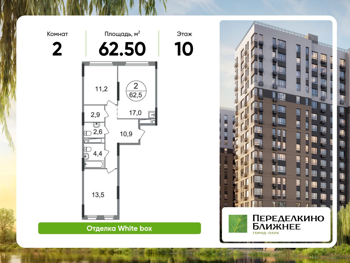 Общая площадь квартиры - 62,5 кв. м, этаж 10 из 17.