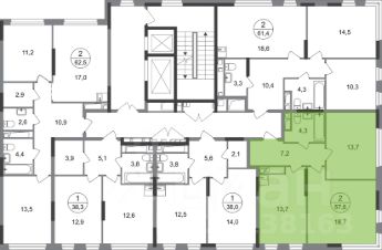 Общая площадь квартиры - 57,6 кв. м, этаж 11 из 17.