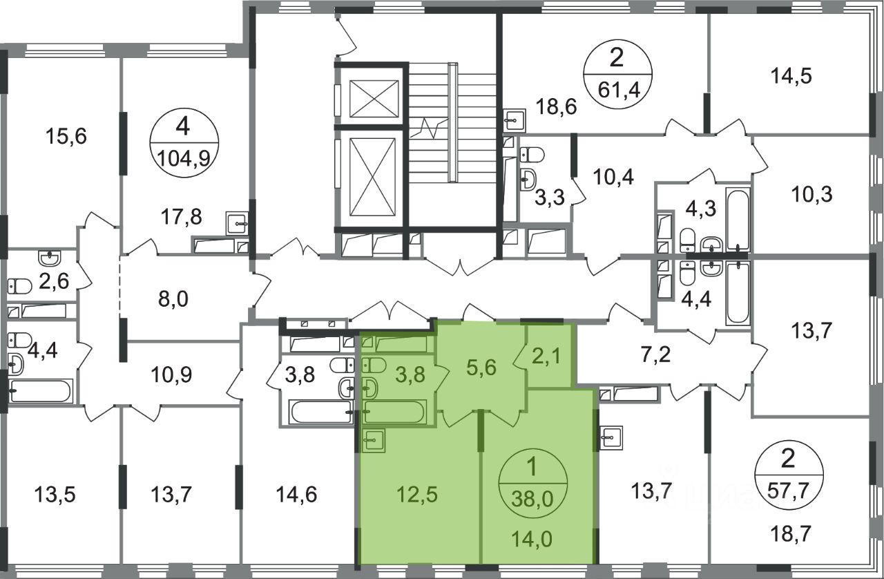 Общая площадь квартиры - 38 кв. м, этаж 14 из 17.