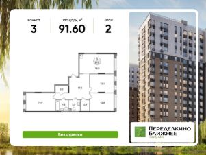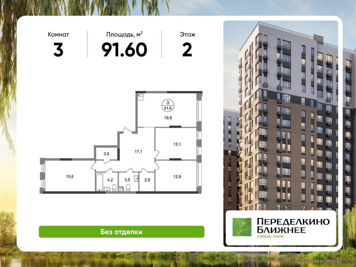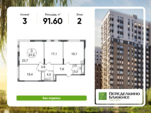 Общая площадь квартиры - 91,6 кв. м, этаж 2 из 17.