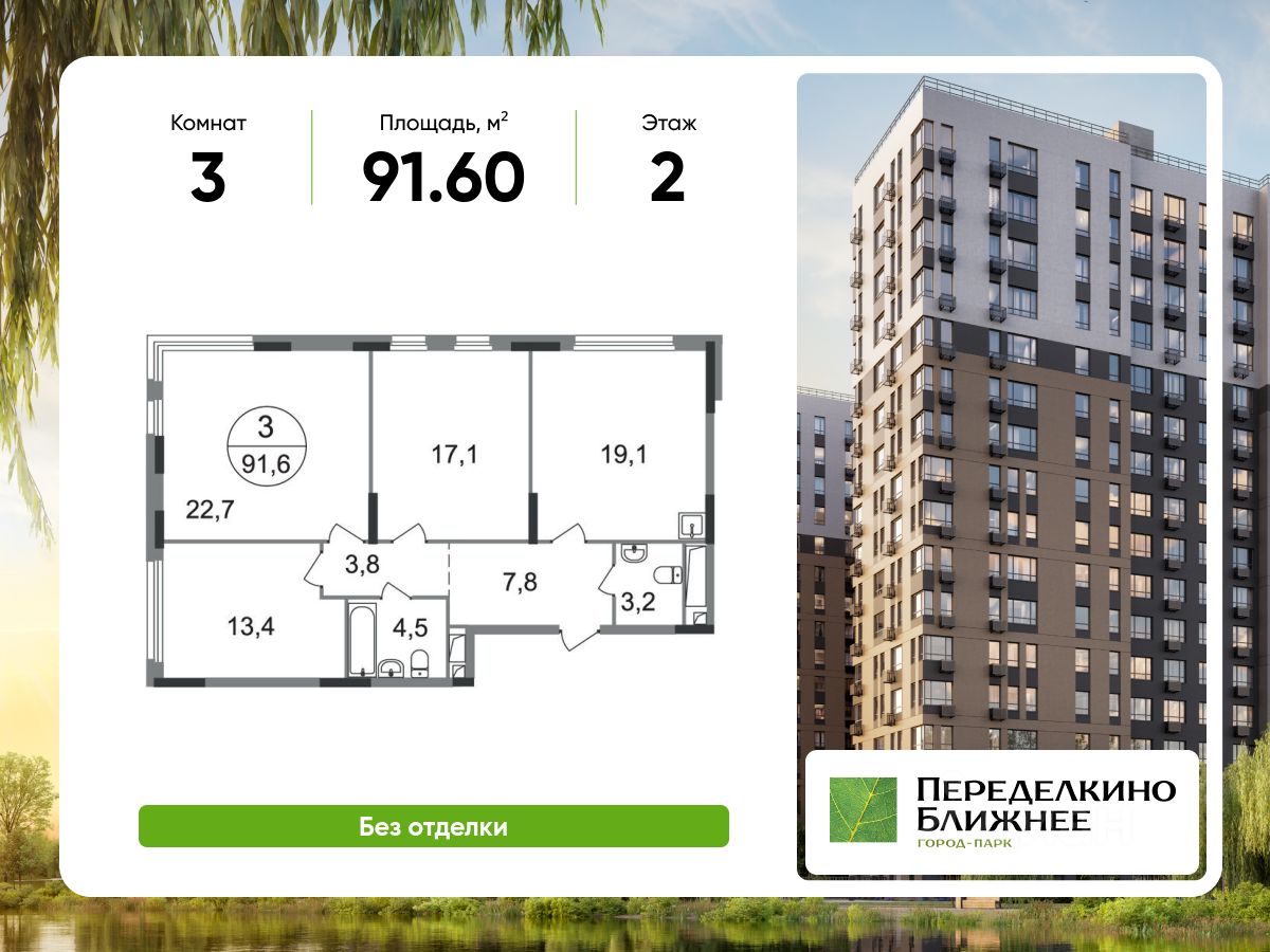 Общая площадь квартиры - 91,6 кв. м, этаж 2 из 17.