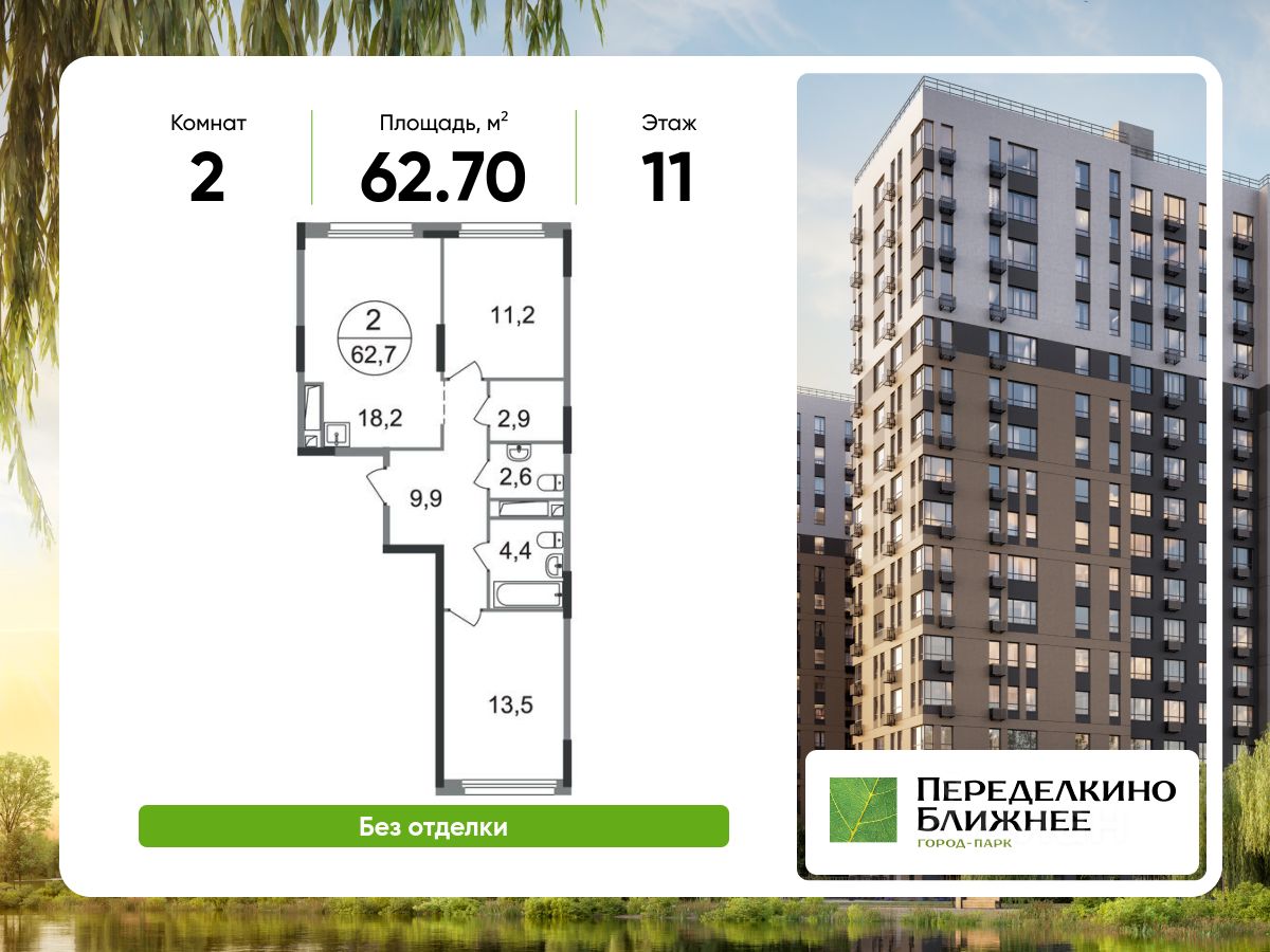 Продается двухкомнатная квартира в городе-парке "Переделкино Ближнее".