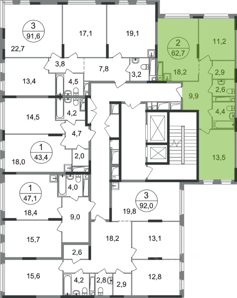 - в каждой секции 2 лифта: 1 пассажирский, 1 грузовой