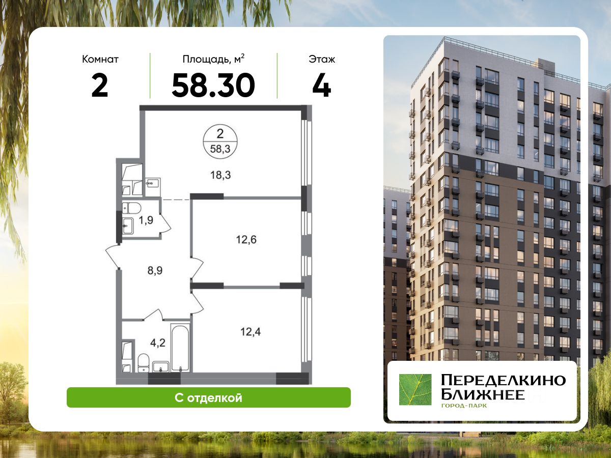 Общая площадь квартиры - 58,3 кв. м, этаж 4 из 17.