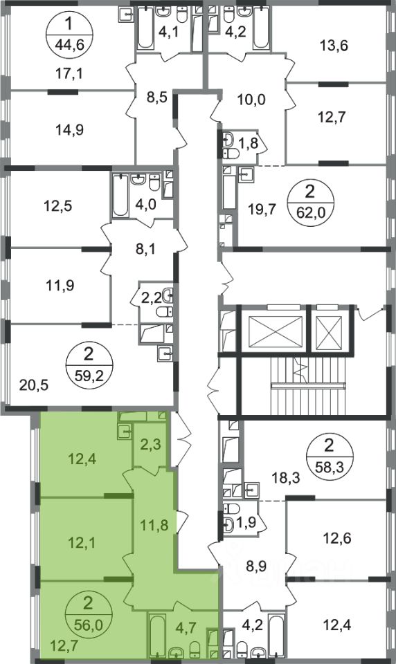 Общая площадь квартиры - 56 кв. м, этаж 10 из 17.