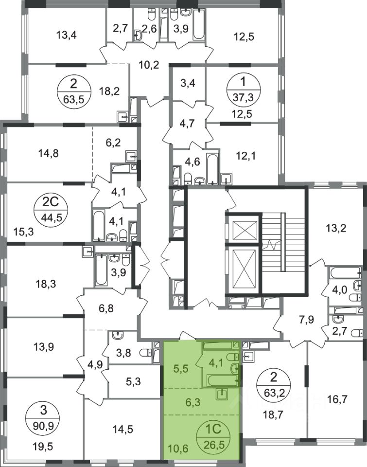 - в каждой секции 2 лифта: 1 пассажирский, 1 грузовой
