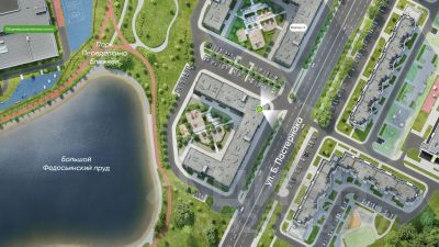 13 фаза имеет уникальное расположение и находится непосредственно на берегу Федосьинского пруда, который является сердцем города-парка "Переделкино Ближнее".