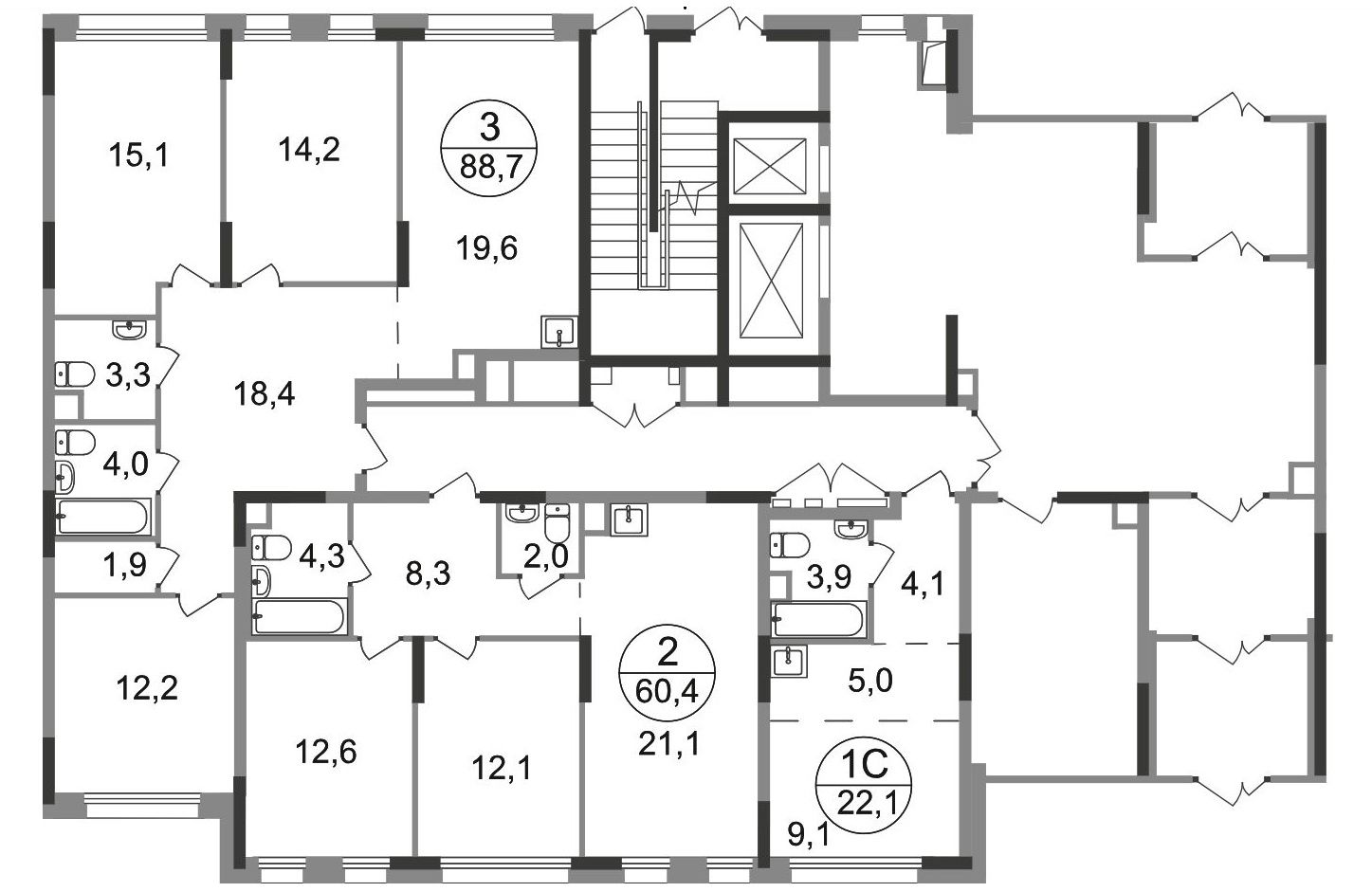- в каждой секции 2 лифта: 1 пассажирский, 1 грузовой