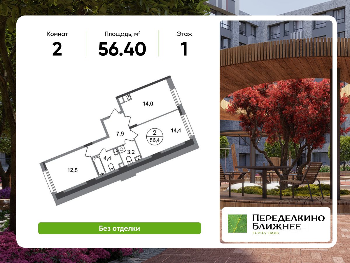 Общая площадь квартиры - 56,4 кв. м, этаж 1 из 17.