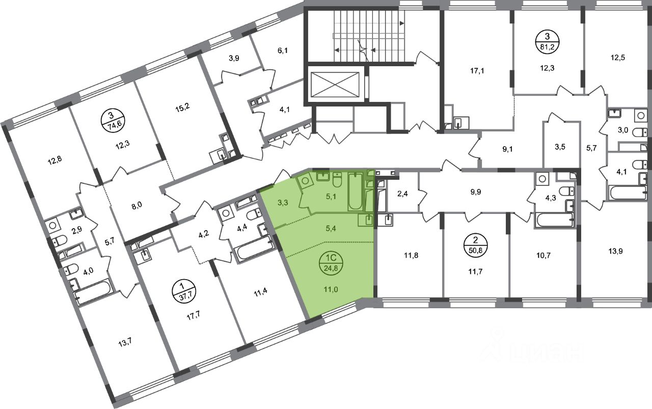 Общая площадь квартиры - 24,8 кв. м, этаж 5 из 17.