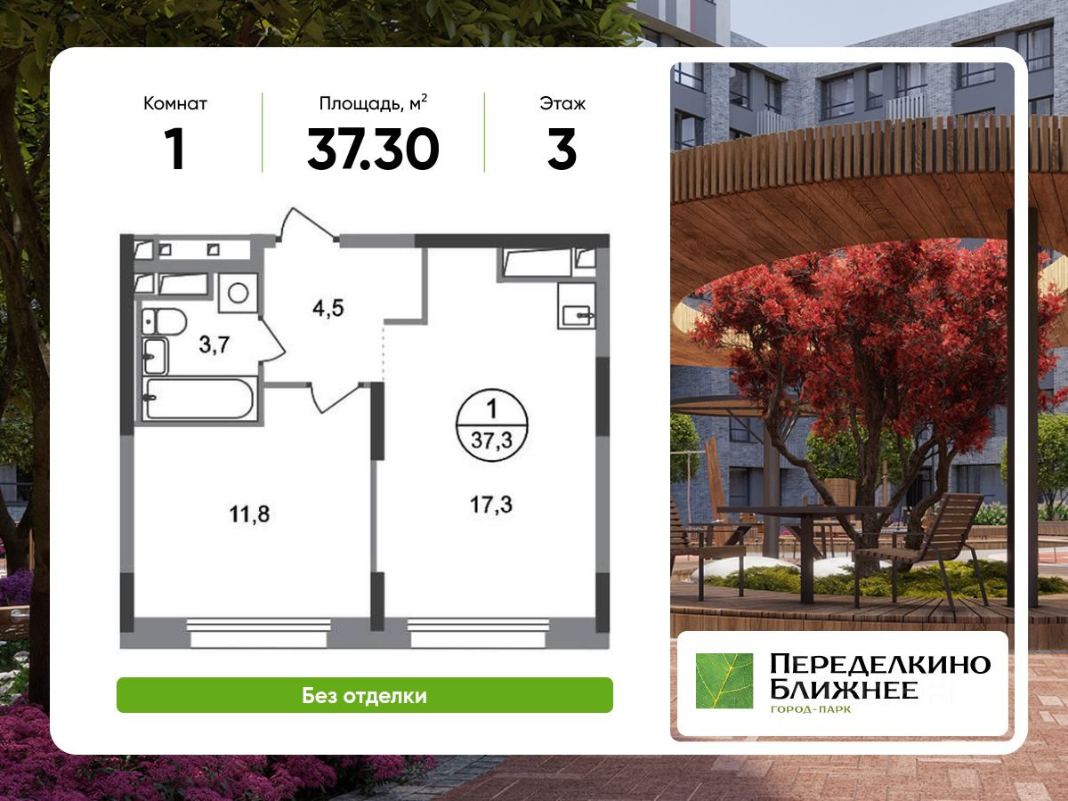 Продается однокомнатная квартира в городе-парке "Переделкино Ближнее".