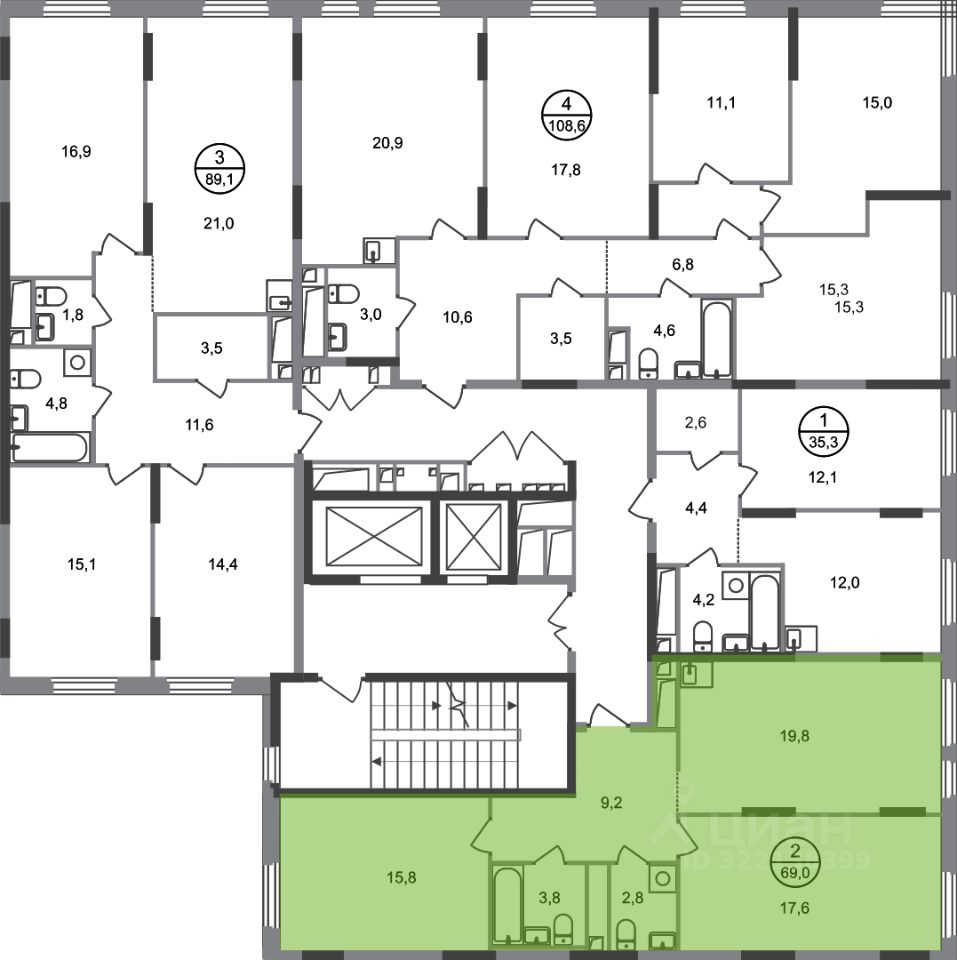 Общая площадь квартиры - 69 кв. м, этаж 13 из 17.