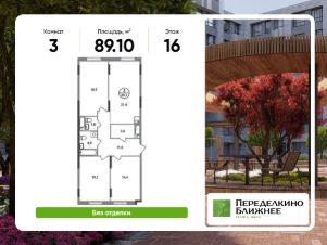 Общая площадь квартиры - 89,1 кв. м, этаж 16 из 17.