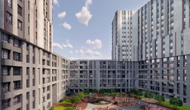 Современный монолитный дом переменной этажности 7 и 17 этажей. На фасаде предусмотрены корзины для установки кондиционеров. Входные группы домов выполнены по авторскому дизайну. Колясочные располагаются при входе, велопарковка на -1 этаже.