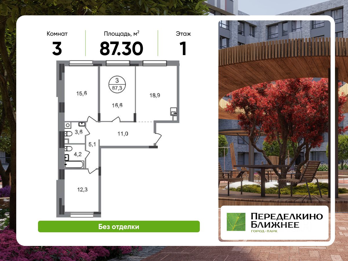 Общая площадь квартиры - 87,3 кв. м, этаж 1 из 17.