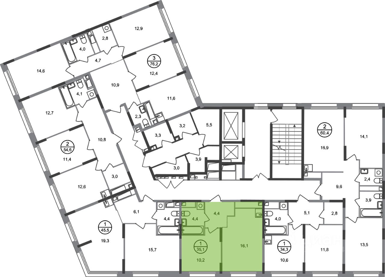 Общая площадь квартиры - 35,1 кв. м, этаж 7 из 17.