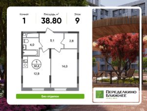Общая площадь квартиры - 38,8 кв. м, этаж 9 из 17.