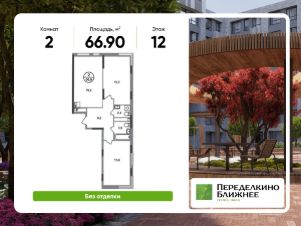 Общая площадь квартиры - 66,9 кв. м, этаж 12 из 17.
