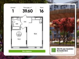 Общая площадь квартиры - 39,6 кв. м, этаж 16 из 17.