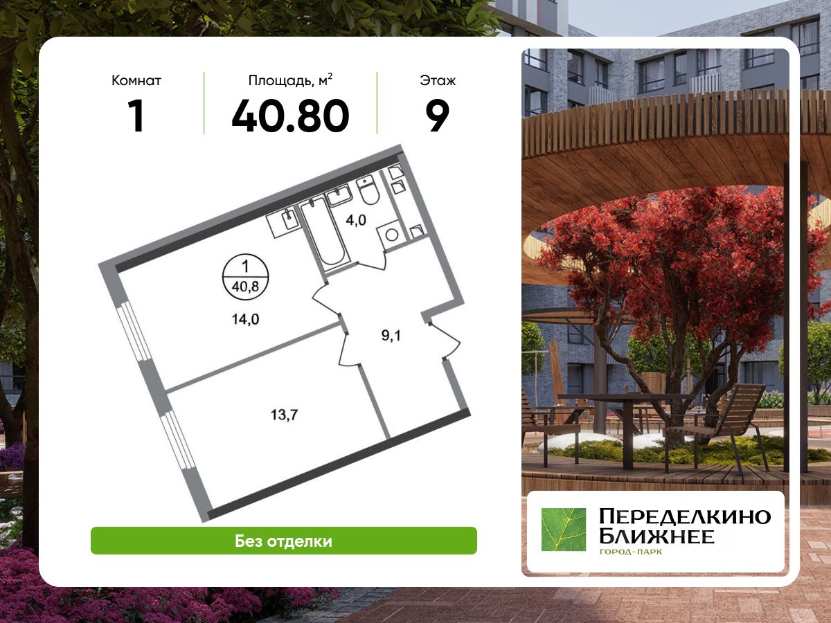 Общая площадь квартиры - 40,8 кв. м, этаж 9 из 17.