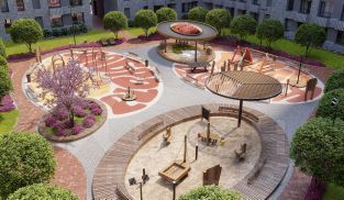 В рамках данной фазы, для жителей предусмотрено создание пространства, свободного от машин - благоустроенные огороженные дворы с современными детскими и спортивными площадками, разделенными на зоны по возрастам.