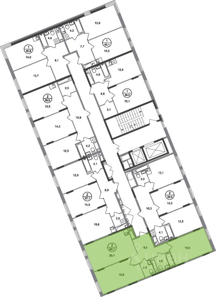 Общая площадь квартиры - 66,7 кв. м, этаж 17 из 17.