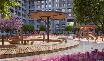 Входные группы выполнены по авторскому дизайну, оснащены системой "тёплый пол". В каждой входной группе будет располагаться комфортабельная зона ожидания, почтовые ящики, колясочная, акцентные пуфы и столик.