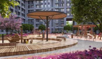 Входные группы выполнены по авторскому дизайну, оснащены системой "тёплый пол". В каждой входной группе будет располагаться комфортабельная зона ожидания, почтовые ящики, колясочная, акцентные пуфы и столик.