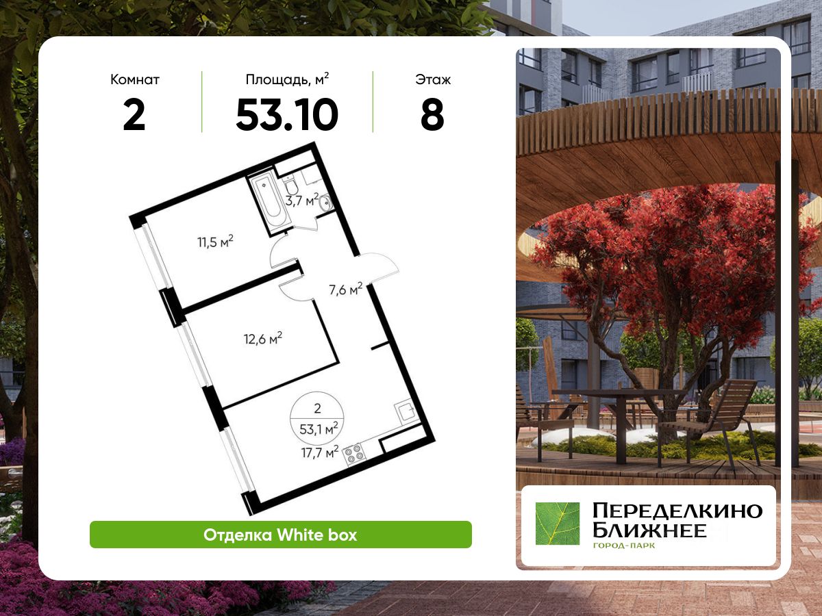 Общая площадь квартиры - 53,1 кв. м, этаж 8 из 17.