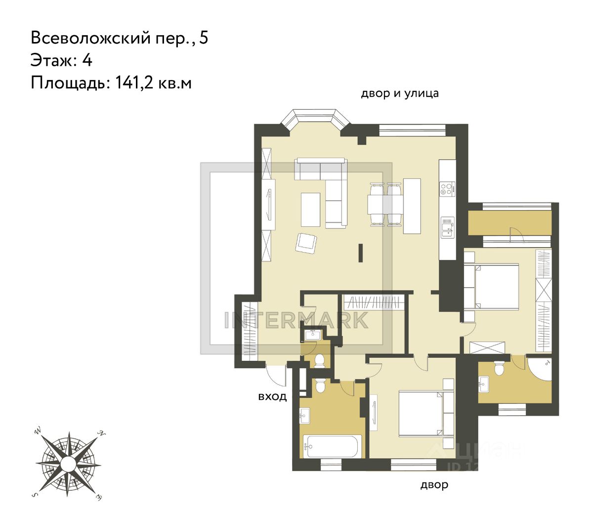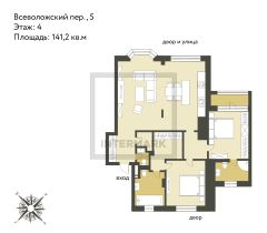 ID 64968. ЖК Резиденция на Всеволожском. Редкое предложение в статусном жилом комплексе Резидения на Всеволожском в районе Остоженки - трехкомнатная квартира "под ключ" с видом на главный собор страны.