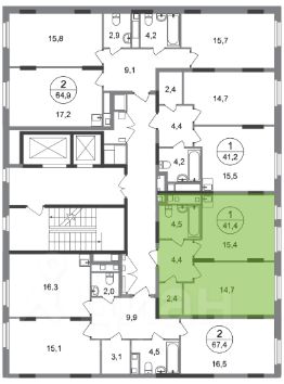 Общая площадь квартиры - 41,4 кв. м, этаж 10 из 17.