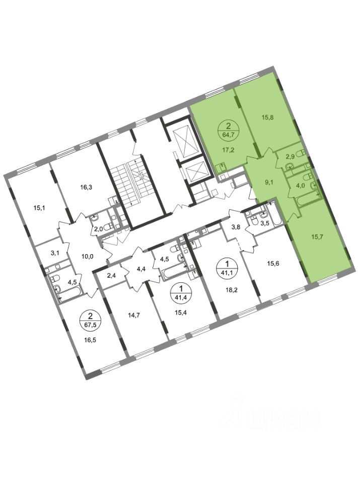 Общая площадь квартиры - 64,7 кв. м, этаж 5 из 17.