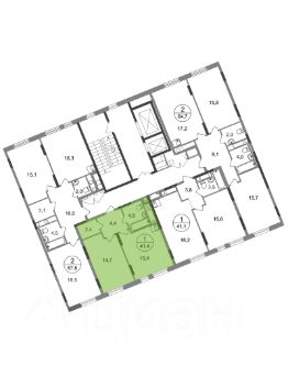 Общая площадь квартиры - 41,4 кв. м, этаж 8 из 17.