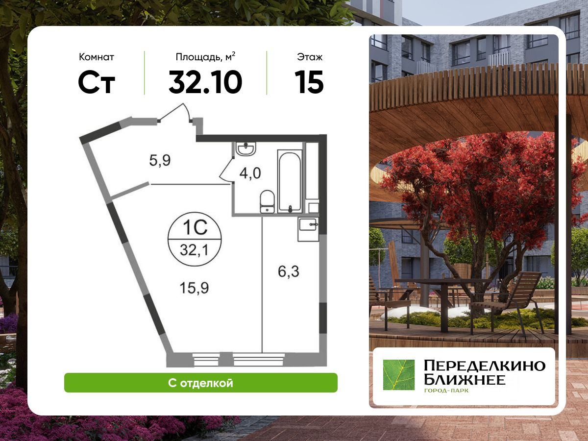 Общая площадь квартиры - 32,1 кв. м, этаж 15 из 17.