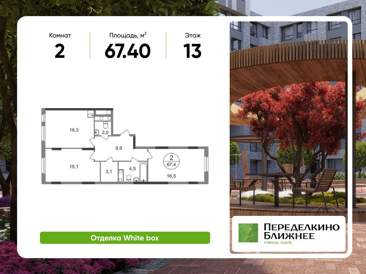 Общая площадь квартиры - 67,4 кв. м, этаж 13 из 17.