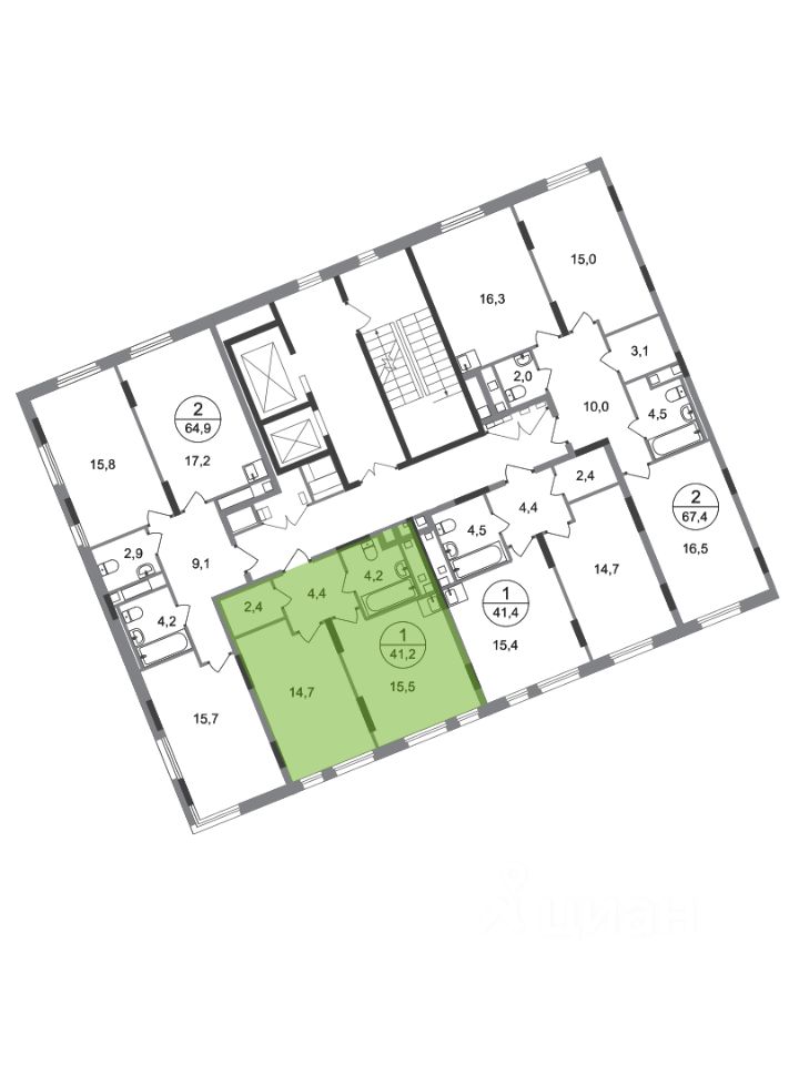 Общая площадь квартиры - 41,2 кв. м, этаж 14 из 17.