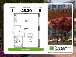 Общая площадь квартиры - 45,3 кв. м, этаж 8 из 17.