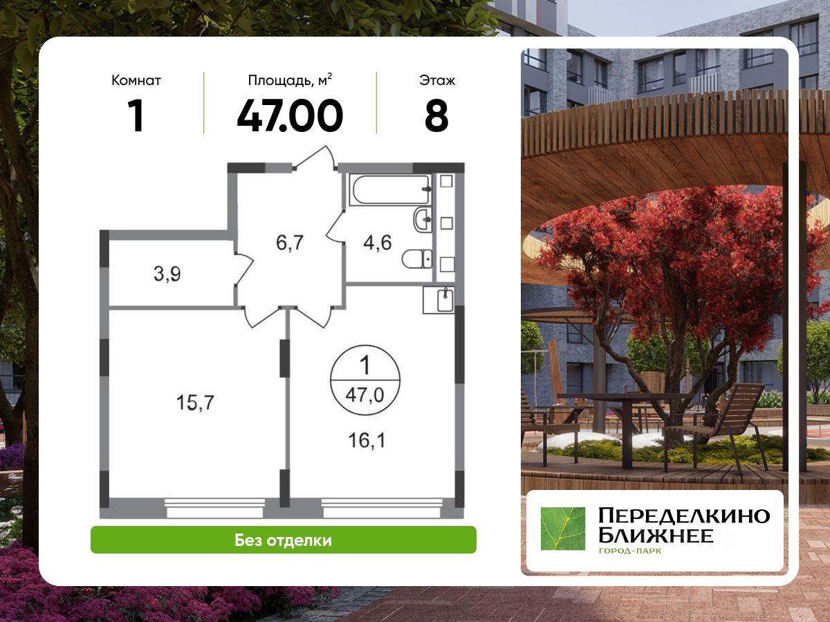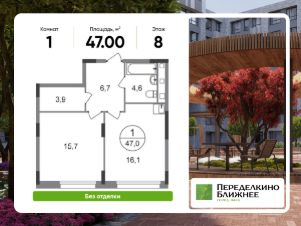 Общая площадь квартиры - 47 кв. м, этаж 8 из 17.