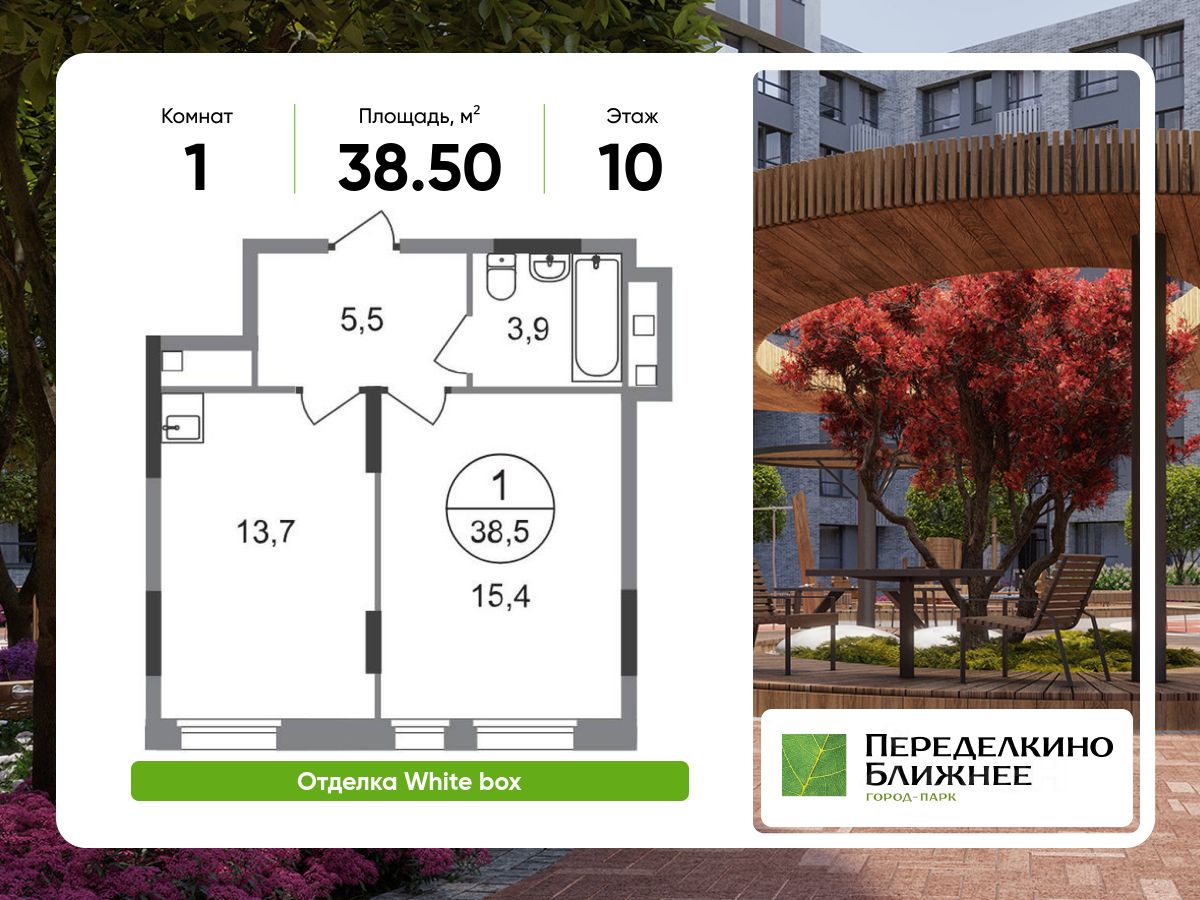 Общая площадь квартиры - 38,5 кв. м, этаж 10 из 17.