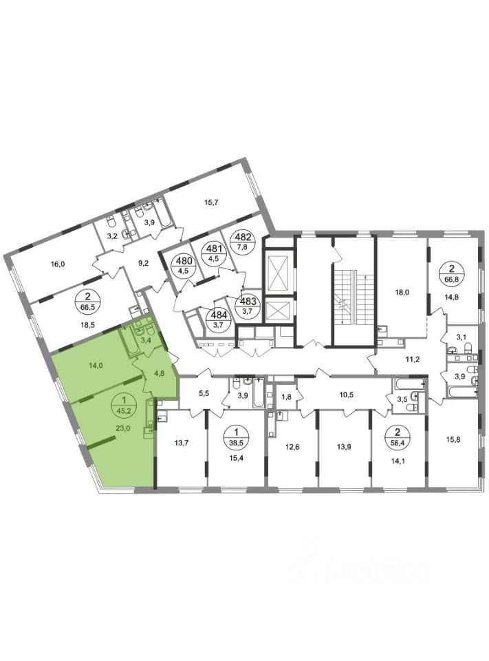 Общая площадь квартиры - 45,2 кв. м, этаж 15 из 17.