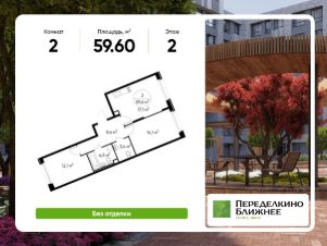 Продается двухкомнатная квартира без отделки в 18 фазе города-парка "Переделкино Ближнее".