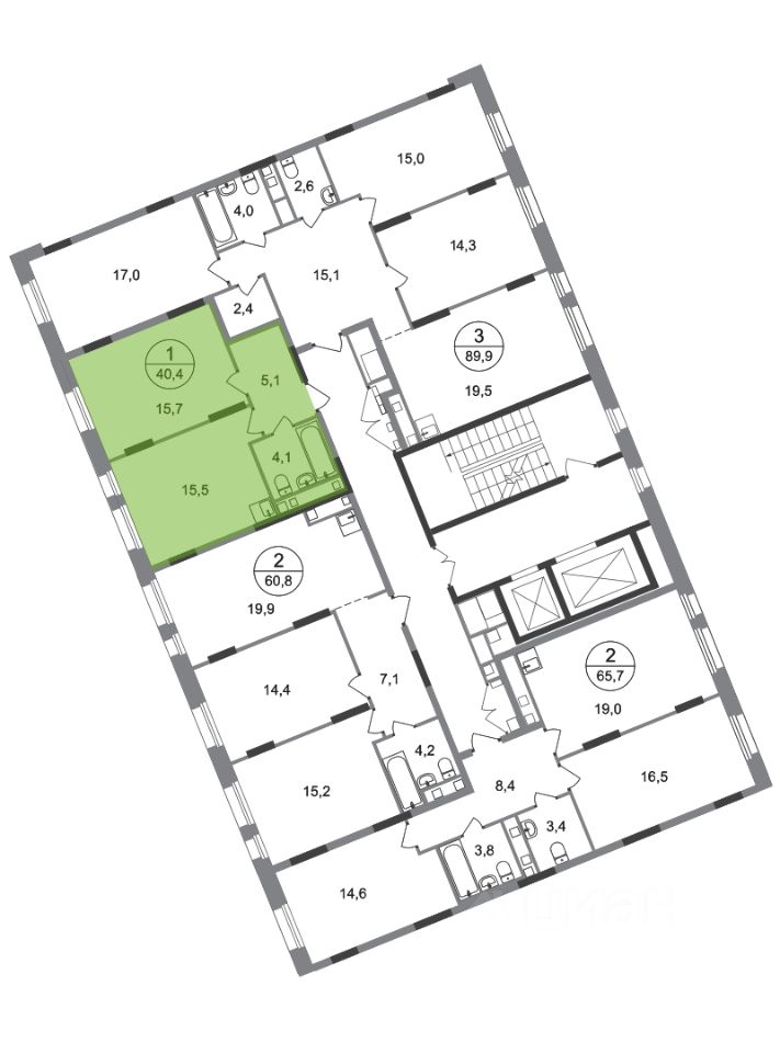 Общая площадь квартиры - 40,4 кв. м, этаж 7 из 17.