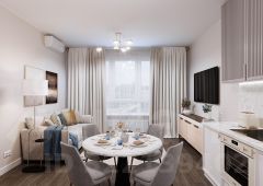 - Smart+ (современный стиль) - нейтральная цветовая гамма с использованием бетонных фактур и темного керамогранита, керамическая плитка до потолка в ванной и санузле.