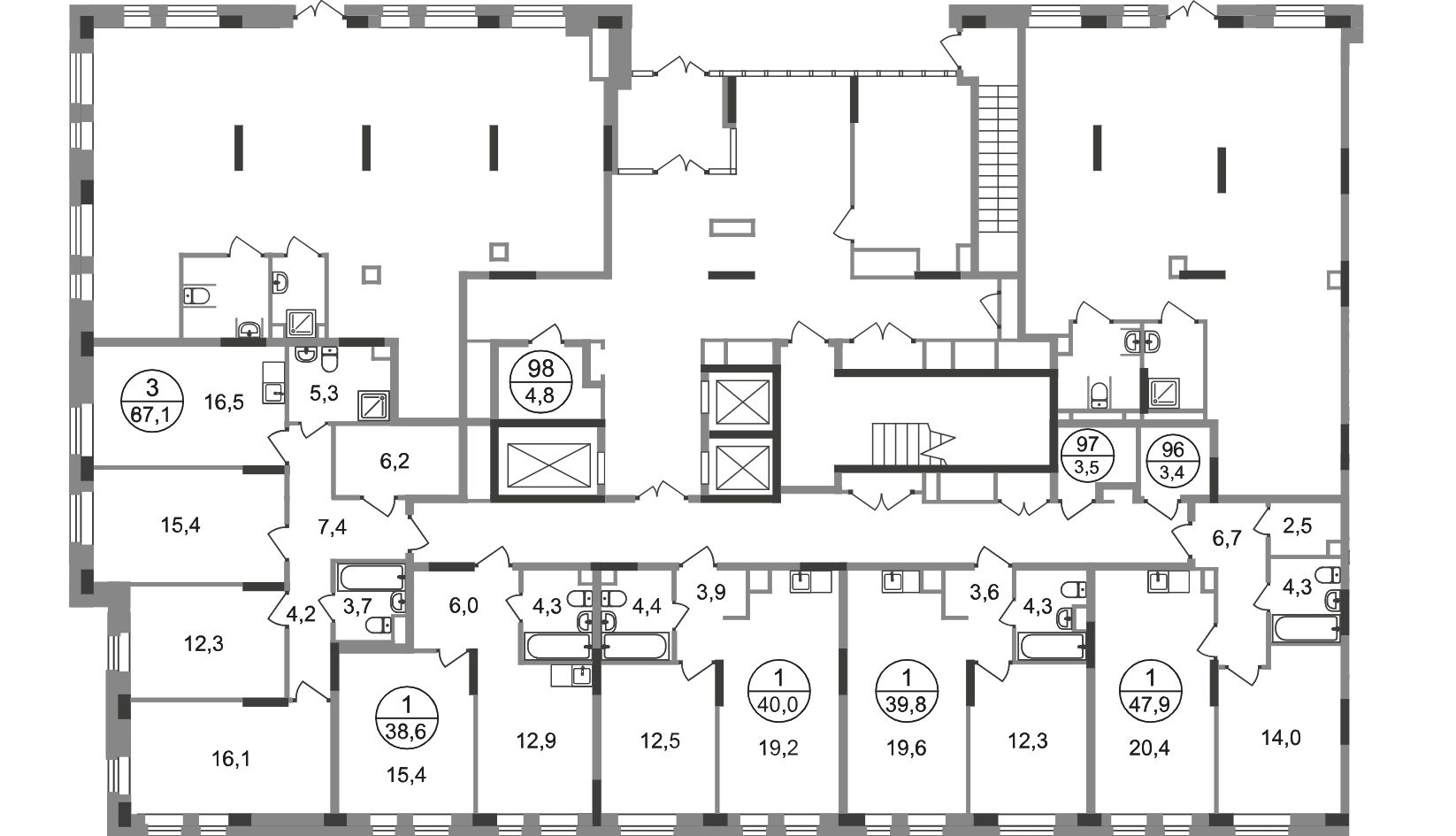 - в каждой секции корпуса по 3 лифта: 2 пассажирских, 1 грузовой