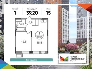 Общая площадь квартиры - 39,2 кв. м, этаж 15 из 19.